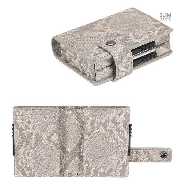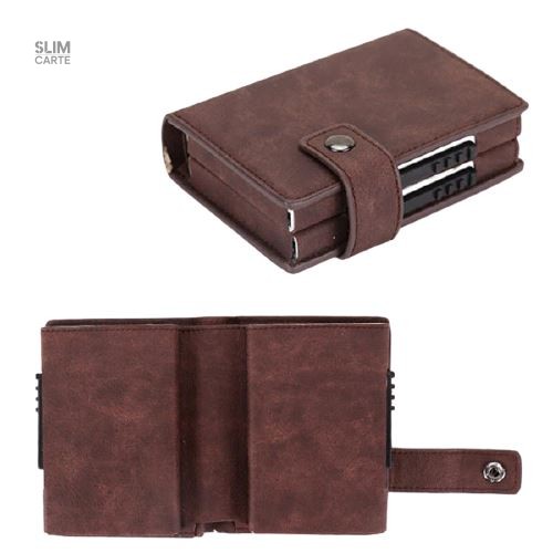 Mesurant 10.4 cm x 7.7 cm, ce porte-cartes présente une fermeture à bouton pression qui sécurise efficacement son contenu. Un bouton d’expulsion automatique facilite l’accès à vos cartes, rendant leur utilisation quotidienne agréable et intuitive. Fabriqué en simili cuir et métal durable, il allie esthétique et robustesse.