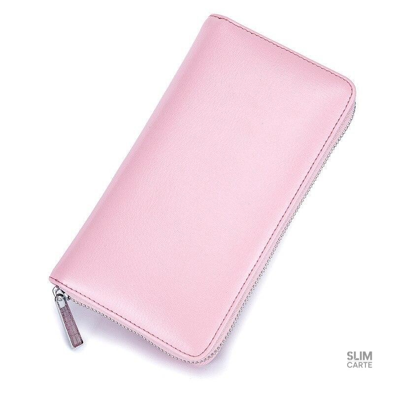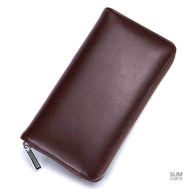Porte-cartes long en cuir à glissière RFID