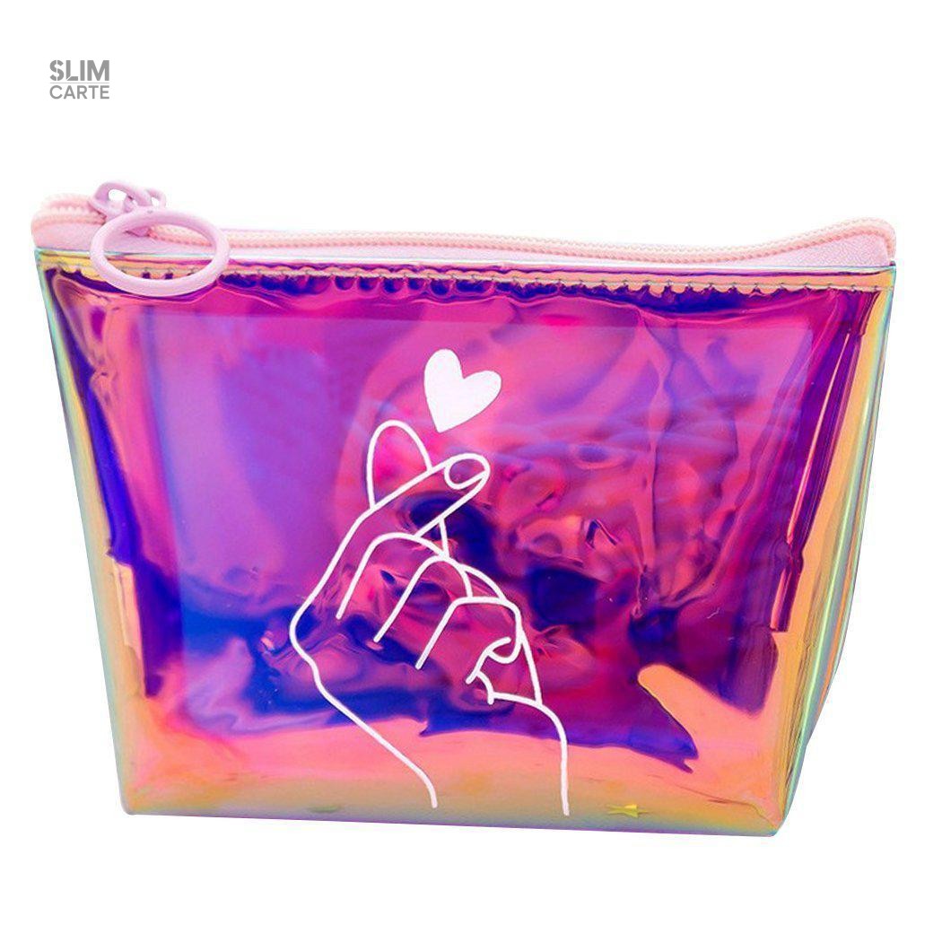 Porte-monnaie hologramme: élégant et fonctionnel, disponible en rose, violet et laser. Parfait pour un usage quotidien et un look tendance.