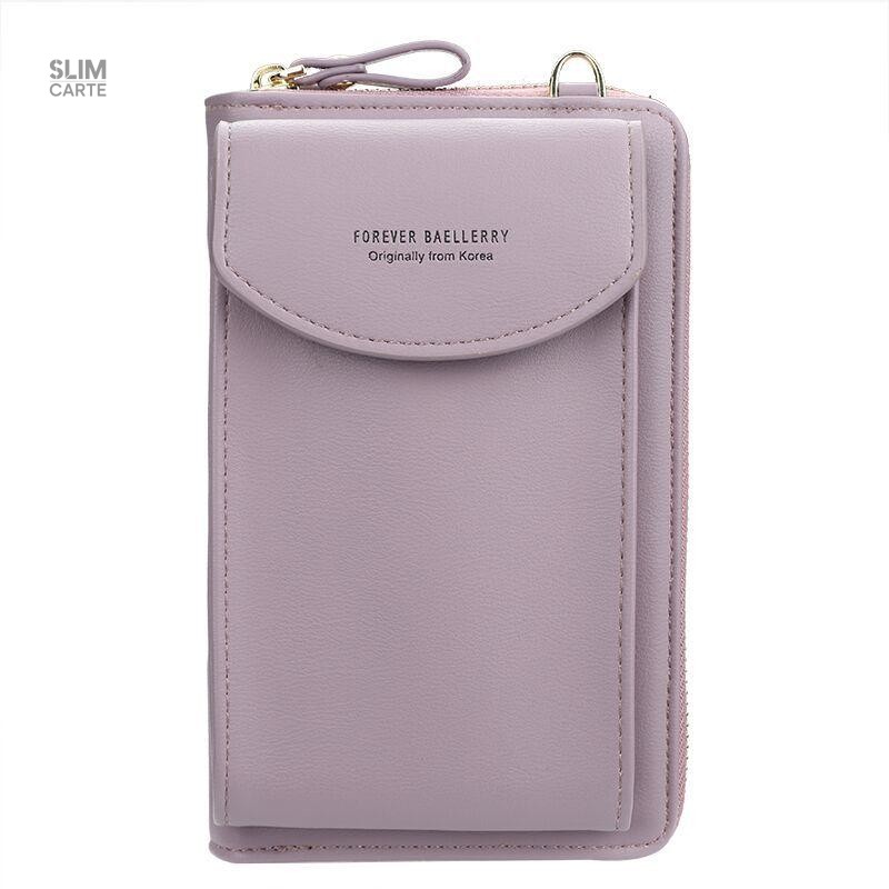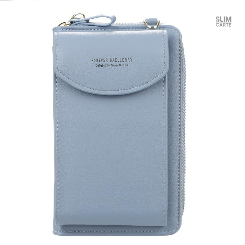 Portefeuille à bandoulière. Disponible en plusieurs couleurs (bleu, gris, noir, rose, vert) pour allier style et praticité au quotidien.