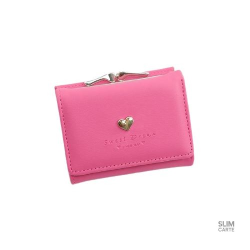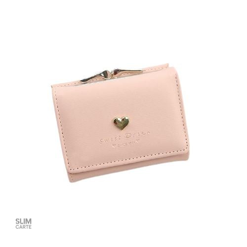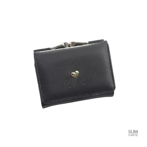 Le Portefeuille avec décoration coeur. Idéal pour les femmes qui souhaitent garder leurs essentiels à portée de main, ce modèle compact résout le problème des pièces égarées au fond d’un sac à main. Dites adieu au désordre et accueillez l’organisation élégante.