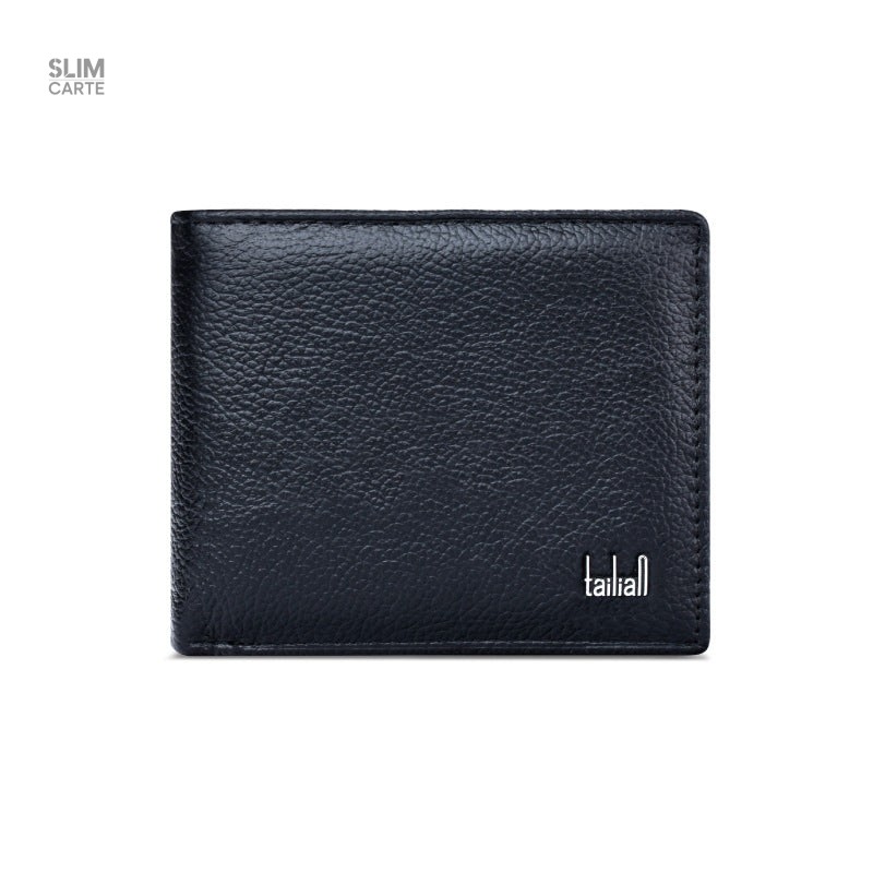 Portefeuille classique en cuir véritable lisse