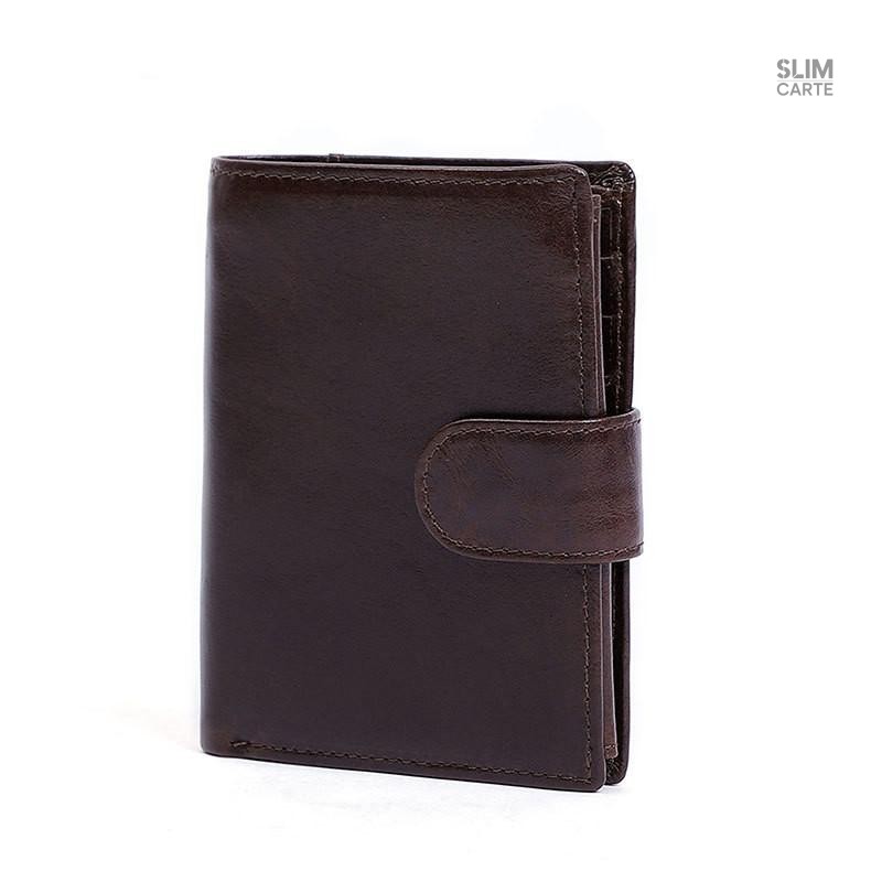 Portefeuille en cuir lisse vintage. Disponible en brun foncé, noir, brun et café, il allie élégance et praticité pour un usage quotidien. Idéal pour hommes et femmes.