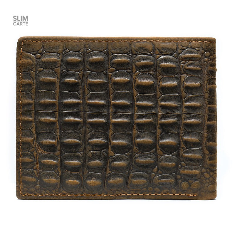 Ce portefeuille se distingue par son motif crocodile délicat qui apporte une touche de sophistication. Sa fabrication en cuir authentique garantit une durabilité optimale, tout en offrant une texture agréable au toucher. Compact et léger, il se glisse facilement dans n’importe quelle poche, qu’il s’agisse d’un pantalon ou d’une veste, rendant son transport des plus aisés.
