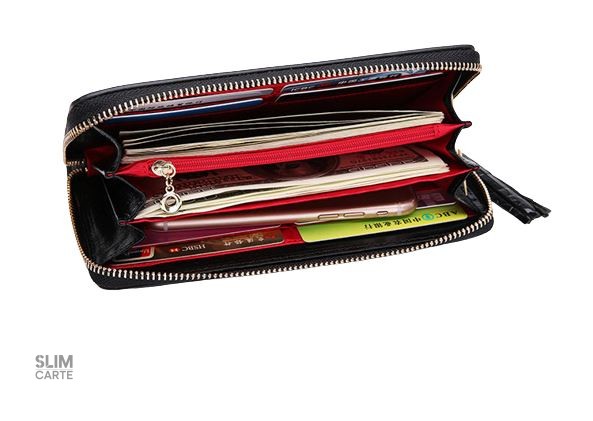 Ce portefeuille est conçu pour accueillir tous vos essentiels. Il dispose de compartiments pour les billets, ainsi que d’une poche dédiée pour les monnaies, vous permettant d’organiser votre argent facilement. Les espaces dédiés aux cartes et une pochette pour téléphone ajoutent encore à sa praticité. Vous pouvez même l’utiliser comme un accessoire à porter au poignet grâce à son cordon, ideal pour des sorties légères.
