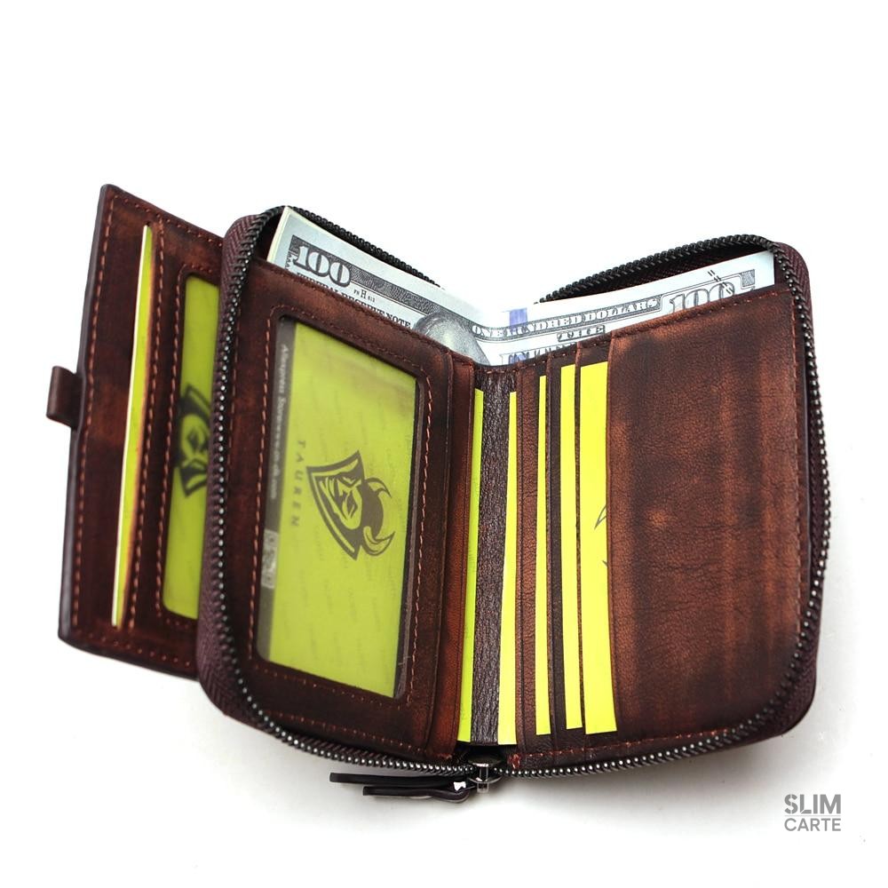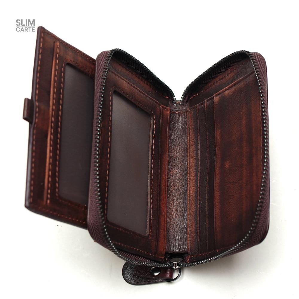 Portefeuille en véritable cuir zippé