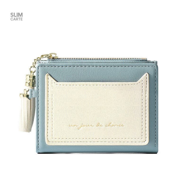 Le Portefeuille femme court bicolore. Conçu pour s’adapter à votre vie quotidienne, il offre un espace de rangement optimisé pour vos cartes, billets et pièces de monnaie, tout en restant compact et facile à transporter.