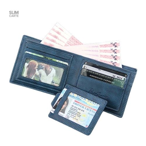 Portefeuille en simili cuir moderne, disponible en noir, bleu, brun et café. Élégant et fonctionnel, il organise vos essentiels avec style. Idéal pour homme et femme.